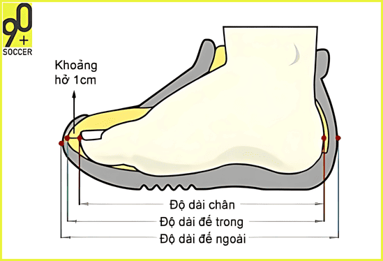 Chọn size giày bóng đá cần để ý phom bàn chân.